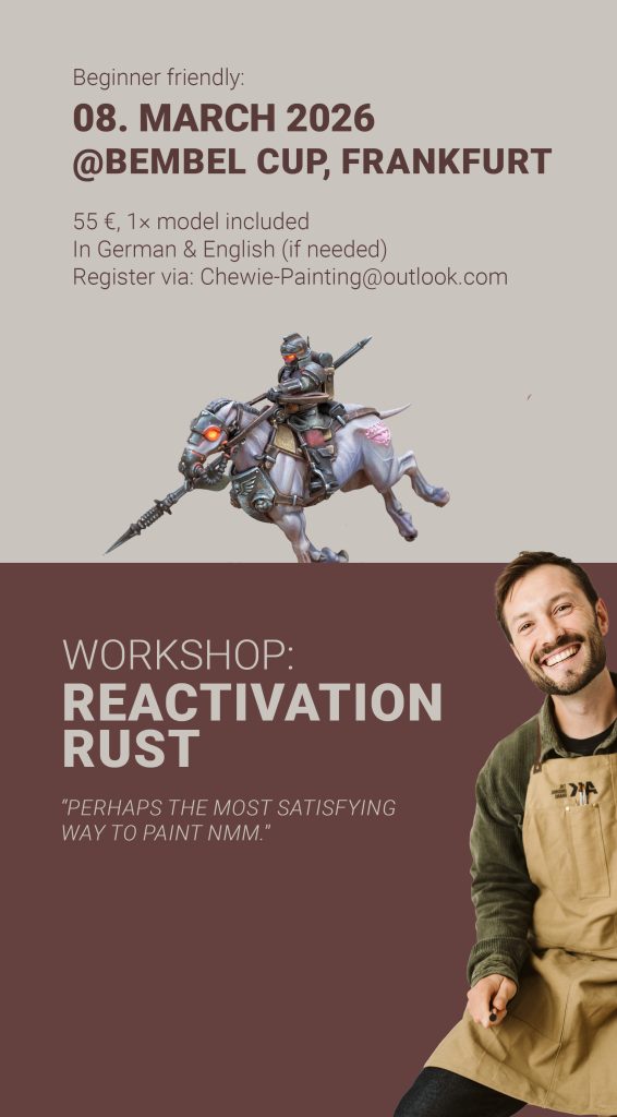I live in Munich, but I love to travel and share what I’ve learned over the past 10 years of miniature painting — so I’m ready to visit your city or club! My workshops can be held in either German or English.
